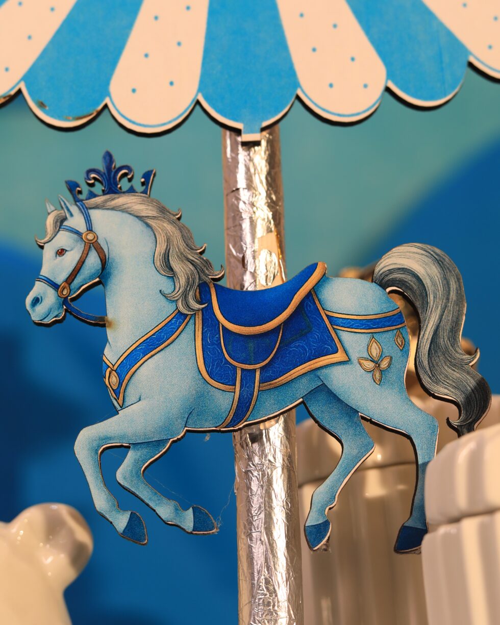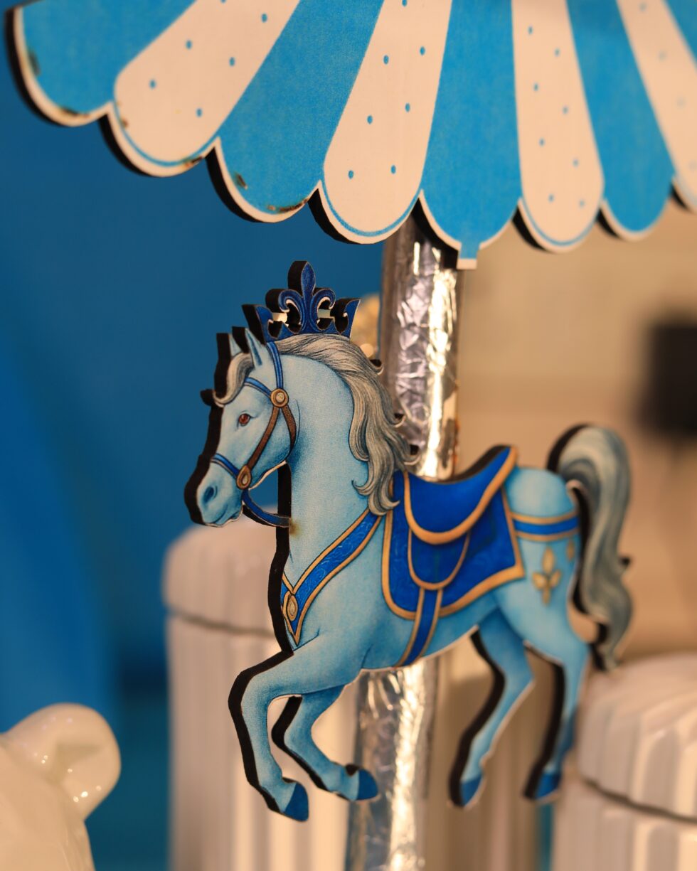 🎠 Blue & White Carousel Topper