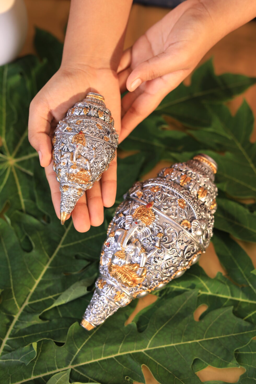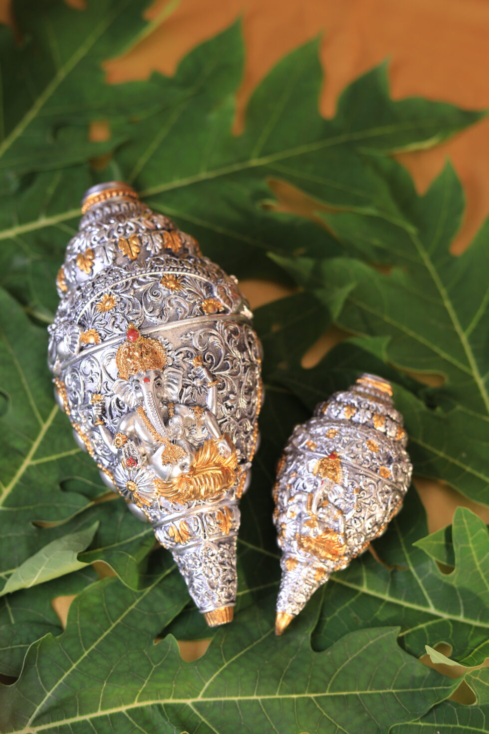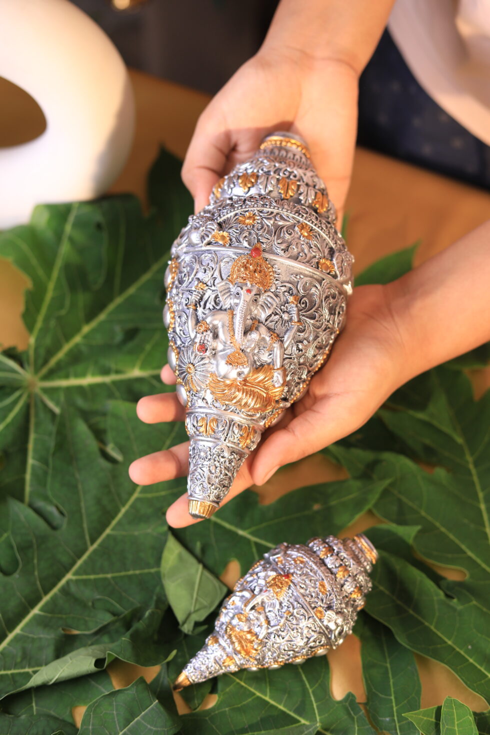 • 🐚 Handcrafted Ganesha Shankh with ornate detailing