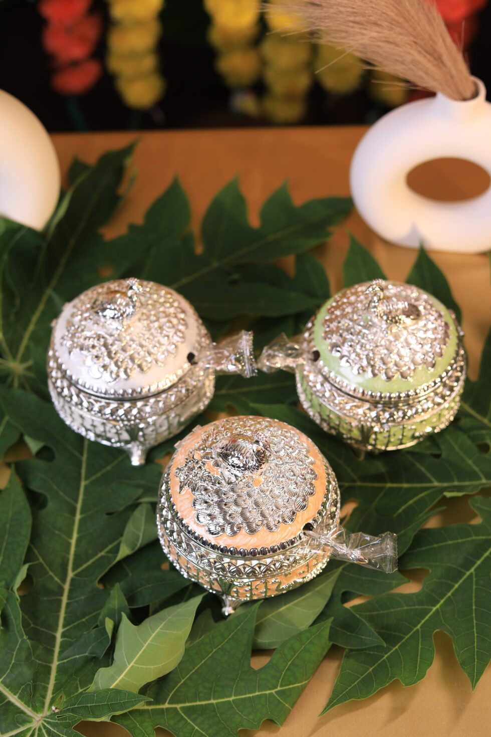 Add a touch of regal elegance to your festive gifting with the Giforia Royal Silver Meenakari Jars Set ✨🌿. Handcrafted with intricate detailing, each jar showcases traditional artistry combined with a modern luxurious finish.