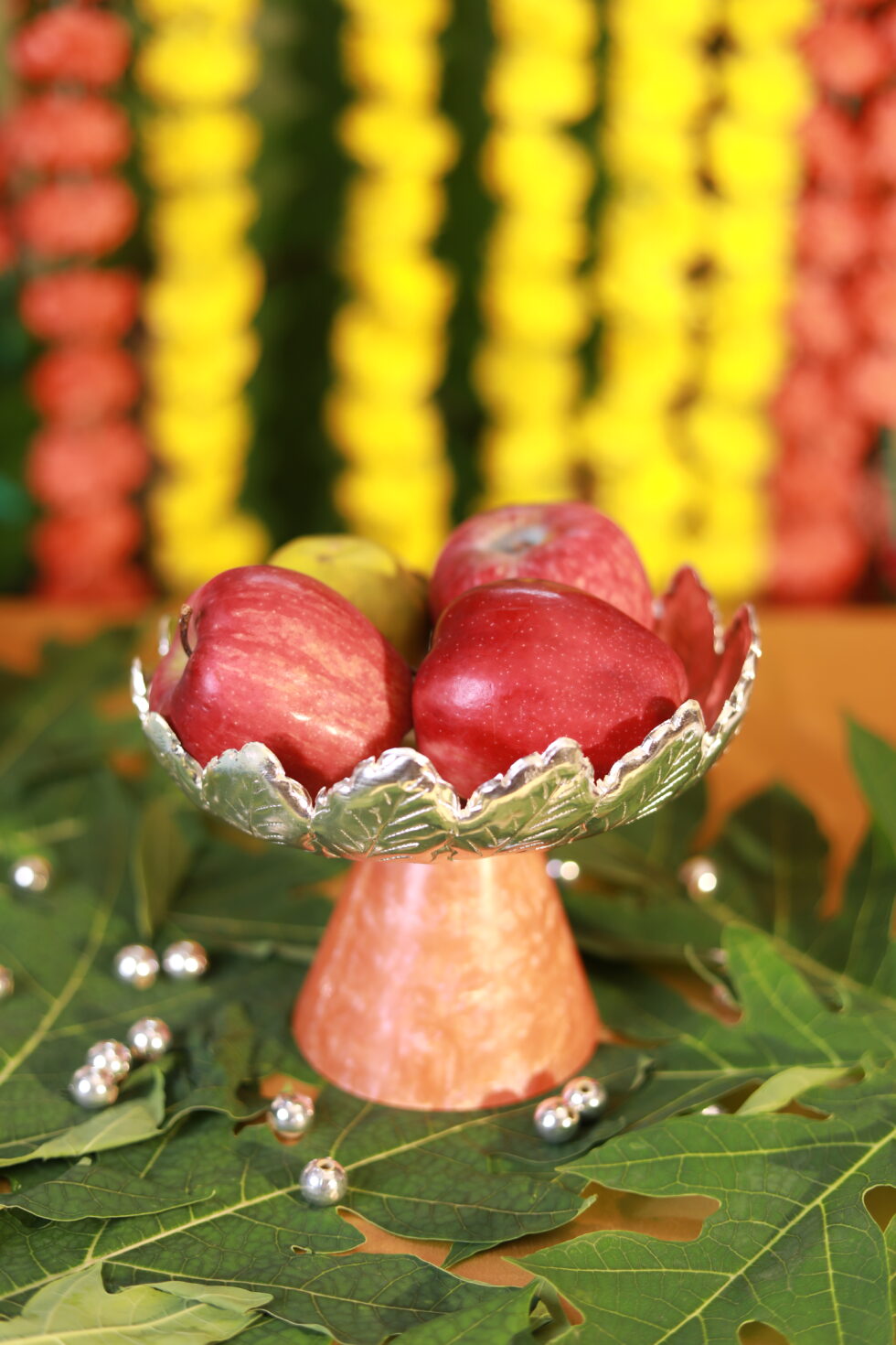Designed to hold fruits beautifully while adding an eye-catching aesthetic to your mandir, dining table, or festive decor.